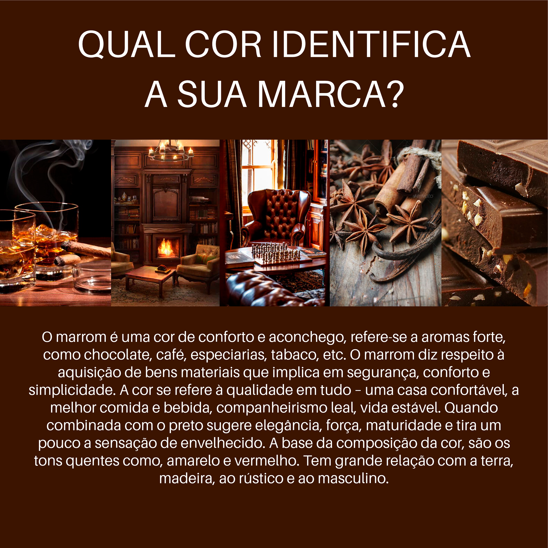 A inspiração para criação de marca da Confraria do Whisky, seguiram tons quentes, como uma lareira acesa, ambiente aconchegante, poltrona confortável, luz na sala suave, penumbra, cheiro defumado e amadeirado no ar, bebida quente para aquecer e relaxar.